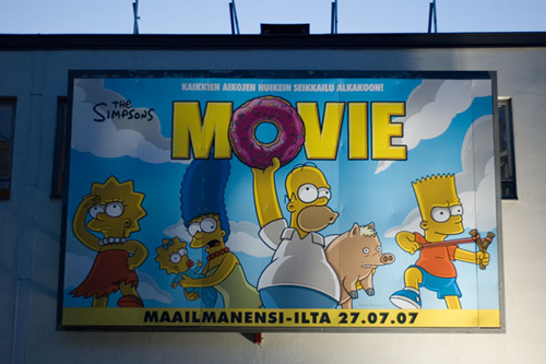 Koska pääkaupungissamme ei ole yksikään kahvila auki kymmenen jälkeen, päätämme siirtyä Tennispalatsiin, jossa noin puolentoista tunnin päästä alkaa The Simpsons Movie, jokaisen fanin märkä uni ja fantasioiden täyttymys. Kolmikko poseeraa Tennarin aulassa kameralle muovisen Simpsonit-perheen kanssa. Villeimpään asentoon hakeutuu Mikko, joka kuvittelee olevansa black metal -yhtyeen promokuvauksissa. Ville käyttäytyy hillityimmin, Sami parkkeeraa hymyssä suin takapuolensa Bartin naamalle.